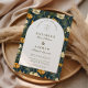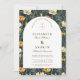 A rich and sophisticated floral design featuring deep navy tones accented with warm golden blooms, framed within a timeless arched layout. The contrast between the dark background and soft ivory center creates a striking, high-end aesthetic that feels both modern and classic.