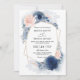Convites Navy Blue Floral Dusty Budget QR Code Wedding