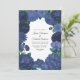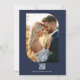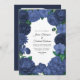 Convites Navy Blue Floral Photo and QR Code Wedding