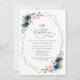 Invite friends and family in style and set the tone for your special day with this charming birthday invitation. Design features navy and blush pink watercolor flowers, greenery and gold frame on white background.