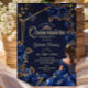 Convites Navy Blue Golden Tiara Roses Quinceañera