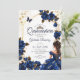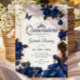 Convites Navy Blue Golden Tiara Roses Quinceañera