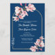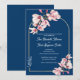 Convites Navy Blue Pink Magnolia Elegant Floral Wedding