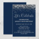 Convites Navy Blue & Silver Glitter 50th Birthday Party