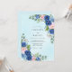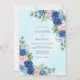 This design features a soft wash of pale blue in the background, adorned with lush floral clusters. Deep navy blue roses are beautifully balanced with delicate blush pink blooms and lighter azure accents. Sprigs of silver dollar eucalyptus and sage green leaves add an organic, botanical feel to the arrangement. The romantic watercolor aesthetic creates a serene and elegant mood.