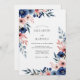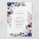 A delicate watercolor design features blooming florals in rich navy and soft blush hues, accented by trailing greenery. This artistic arrangement evokes a romantic and elegant mood. Perfect for a timeless occasion.