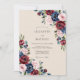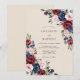 Deep navy blue and rich burgundy watercolor roses anchor this sophisticated botanical design. Soft blush blooms and dark berries are nestled among sage and forest green foliage for a moody yet romantic aesthetic. This elegant floral arrangement creates a graceful visual against a warm cream background, perfect for a refined seasonal event.