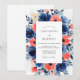 A vibrant display of painterly blue and coral blooms evokes a romantic, artistic atmosphere. Lush green foliage frames the central motif, creating a striking, enchanting feel. This design radiates a mood of sophisticated charm.