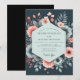 A rich navy backdrop is adorned with a cascade of ethereal blossoms in soft coral, blush, and muted teal hues. Delicate foliage adds depth to this romantic, artistic arrangement, evoking a sense of enchanting mystique.