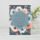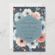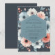 Embrace a touch of enchantment with this captivating floral design. A rich navy backdrop is adorned with a delightful array of blooms in soft blues, whites, and peachy corals. Delicate leaves and hints of berry add depth to this whimsical composition.