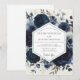 This design features a dramatic arrangement of deep navy blossoms and foliage. The rich color palette evokes a sense of refined romance and moody elegance. It's perfect for a sophisticated, intimate occasion.