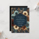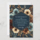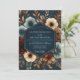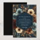 Deep navy tones are enriched with opulent blooms in cream, rust, and muted blue hues. This design evokes a sense of refined elegance with its lush, painterly floral arrangements and rich color palette. The artistic composition suggests a sophisticated, dramatic aesthetic for a memorable occasion.