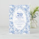 Celebrate a milestone in timeless style with this 70th Birthday Invitation featuring elegant French Toile de Jouy navy roses. Designed in navy blue, royal blue, dusty blue, and deep blue floral tones, this personalized invitation adds classic charm to any celebration. Perfect for a chic, vintage-inspired party, it can be customized with name and details for a truly memorable event.