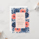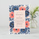 This design features a lush display of watercolor anemones and roses in a striking palette of navy blue and salmon pink. Hand-painted botanical elements and deep blue foliage create a sophisticated and romantic mood. A soft blush backdrop balances the vibrant floral blooms and artistic brushstrokes.