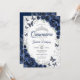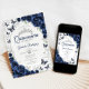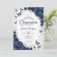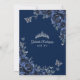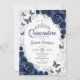 Navy silver and white Quinceanera celebration invitation. Features script font, silver butterflies, watercolor roses and tiara. Perfect for an elegant princess style glam celebration. Personalize with your own details. Printed Zazzle invitations or instant download digital printable template.