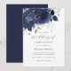 Convites Navy Silver Floral Rose Wedding