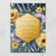 Experience a burst of botanical elegance with this vibrant floral design. Set against a deep navy blue background, a lush arrangement of lavender anemones, golden yellow blossoms, and delicate purple wildflowers creates a stunning contrast. Sprigs of greenery add a touch of natural beauty to this rich and romantic composition, perfect for a sophisticated union.