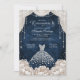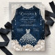 Convites Navy White Diamond Floral Quinceanera Invitation