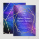 Linhas de ouro geométricas e formas de cristal, lindas nebulosas roxas e azuis no espaço exterior pintaram trabalho de arte de cor d'água com estrelas noturnas num céu noturno cristalino. Perfeito para uma cerimônia religiosa espiritual ou moderna e para uma celebração. A nebulosa na moda arco-íris contrasta com as constelações geométricas e com a galáxia espacial externa. Excelente para o fã de astronomia que ama a lua e o universo cósmico estrelado.