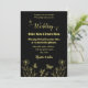 Convite de casamento simples único com flores de ouro românticas e elegantes em fundo preto PARA PRODUTOS MAIS CORRESPONDENTES clique na coleção acima ou entre em contato comigo.