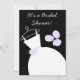 chá de panela bonito com um vestido estilizado de casamento e flores em tons de roxo e branco sobre fundo preto, e texto branco e roxo. Um design personalizável para você personalizar com seu próprio texto, imagens e ideias.