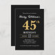 Convites Negra Dourada Minimalista Moderna Simples 45º Aniv