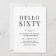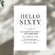 Comemore um marco em estilo com este moderno convite de 60 anos a preto e branco. Apresentando uma manchete ousada de "Olá 60", tipografia limpa, e um design minimalista, é perfeito para dar o tom para uma elegante, mas divertida celebração. Ideal para jantas, coquetéis ou encontros íntimos, este convite facilita a partilha dos detalhes do seu evento especial com familiares e amigos.