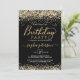 Convite de Aniversário para Na moda preto e Dourado Sparkle. Esta elegante modelo de convite de aniversário feminina feminina para adultos, qualquer idade, com uma caligrafia de tipo de letra com letra maiúscula tendenciosa com bordas de brilho dourado em fundo preto. Perfeito para qualquer idade (16º, 18º, 21rua, 40º, 50º, 60º 70 e 16º, 18º, 21º, 30º, 45º, 60º ou 70º, etc....) Festa de aniversário negra e Dourada. Se você precisar de ajuda ou item correspondente, entre em contato comigo.