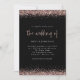 Elegante Rosa Dourado de Namoro Negra de Casamento Leve. Uma tipografia elegante para o título principal "Casamento" De complementar o resto do texto que você pode facilmente personalizar, com bordas de confete de falso brilho rosa dourado no topo e no fundo e também no verso.