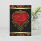 Rich red satin coração red, convite para casamento preto e ouro.