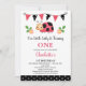 Bunting Red Black Nosso Pequeno primeiro aniversario Ladybug Convite à Senhora Docente O primeiro convite de aniversário para uma menina com uma joaninha fofa, algumas flores, e uma bandeira vermelha, preta e branca de bunda. Este convite de primeiro aniversario de joanilha é totalmente editável e pode ser usado para qualquer idade.