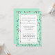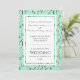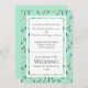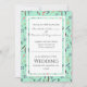 O convite elegante, moderno e muito na moda WEDDING mostra um padrão floral de aquarela com fundo NEO MINT. O verso das Escrituras vem de Mark 10:8. Personalize seus detalhes na frente. O inverso é um plano de fundo NEO MINT simples com texto PERSONALIZÁVEL para que você adicione o local de serviço e os detalhes de recepção. Itens correspondentes disponíveis.