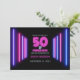 Um néon cor-de-rosa brilhante 50 e fabuloso convite de aniversário 50º. As luzes de néon verticais num fundo preto criam um quadro perfeito para o seu aniversário marcante. Basta adicionar seus detalhes ao cartão e enviá-lo aos seus amigos e familiares. Eles vão ter certeza de que vão te meter!