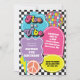 Neon 90's retro Cinco é um convite de aniversário de 5 Vibe com bola de disco e fundo de damas.