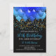 Balões azuis e lacrimejantes e confetti 50º convite de aniversário, 50 com finesse. Matizes azuis ricos em preto. Personalize o seu partido.
