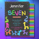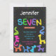 Convites Neon cores balões de animais 7 aniversário