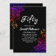 Convites Neon Floral 50º Aniversário Elegante Preto e Branc