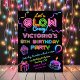 Néon colorido "convites de festas de aniversários malucos do brilho". Possui fontes neon, agitador, bolo de aniversário, cupcake, balão e presente em fundo preto. Bares de cor neon na parte de trás. As palavras "Brilho e festa de aniversário" não podem ser alteradas, mas podem ser eliminadas. Para fazer mais mudanças, vá para Personalizar este modelo. Na parte inferior você verá "Quer personalizar este design ainda mais? Clique em EDIT usando a ferramenta Design. A partir daí você pode mudar algumas fontes e algumas cores, mover coisas ou excluir o que você precisa.