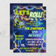 Convites Neon Green Blue Boy deixa o Roller Roller Skling P