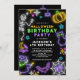 Meninos Neon Halloween, 6, Convite de festas de Figurino de Aniversário. Prepare-se para uma diversão de aniversário assustadora com este convite de aniversário de crianças neon Halloween com esqueleto de neon, abóbora, aranha, bruxa malvada, teia de aranhas e morcegos. Para os rapazes a fazer 6, o que poderia ser mais excelente!