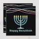 Celebrar Chanukah com este convite ao estilo neon. Luzes neon e menorás neon.