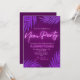 Convite minimalista com luzes de neon e o título para dar ao convite um visual tentador com violeta escuro no fundo com folhas tropicais cintilantes combinando