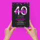 Convide amigos e família para celebrar a sua festa de aniversário de 40 anos com este convite de aniversário cor-de-rosa de néon 400.