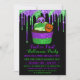 Convites Neon Purple Green Glitter Halloween Cupcake