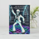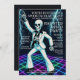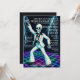Prepare-se para fazer bisbilhotice com os mortos-vivos com o convite da festa de Dia das Bruxas da discoteca. Apresenta um esqueleto de dança divertida com um fato branco, robôs de raios eletrificados e um piscar de dança brilhante no estilo do neon UV em cores rosa, roxo, azul e verde (o efeito é simulado, não em neon real). Este design de bash assombrado único dá o tom para uma noite de figurinos, música e movimentos inesquecíveis. Personalize-o com os detalhes do seu evento e convide convidados para uma celebração assustadora mas divertida.
