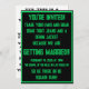 Um convite para o casamento. Você sente falta da anos 80? Você está encurralado em um tema para seu próximo casamento? Eis a resposta a todas as vossas preocupações! Tenha um casamento temático e todos ficarão felizes. Comece com este verde neon no convite para o casamento negro, ele também tem respostas para as perguntas mais frequentes para economizar tempo para que você tenha que responder 300 vezes. #rústico #vintage #casamento #elegante #clássico #romântico #retrô #"feliz para sempre" #tema #champanhe