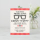 Nerdy 30 convites de aniversário (4,5 x 6,25") com um par de óculos geeks e símbolos pi. Texto escuro e personalizável sobre um fundo de cor creme ligeiramente esbranquiçado. O topo e o fundo são bordas pálidas vermelhas de explosão solar. design divertida com um toque de retrô. Excelente de festa convidada para todos os geeks lá fora.