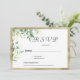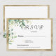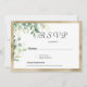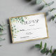 Os convites de RSVP de casamento botânico moderno apresentam cores aquáticas misturadas com folhas rústicas de eucalipto rústicas, em forma verde, em conjunto com um quadro de ouro clássico. Este design é ideal para um evento de tendências e na moda. Personalize este design com sua própria mensagem e informações personalizadas. Todas as designs são impressas.