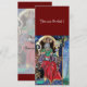 Pintura colorida, vibrante e contemporânea em cores dourada, azul, vermelha, verde, castanha. Um misterioso feiticeiro hipnótico com fantasias elegantes de veludo vermelho segurando uma esfera mágica sentada num trono gótico com gargantas e coruja. Ambiente é surreal, fantástico, alquímico onde você vê um testículo é bebendo de uma xícara, um monge templar voando sobre um sapo, bolhas transparentes, paisagens de fantasia com fogo infernal, céu azul cósmico com estrelas, montanhas do céu, árvores .Egg Tempera em um painel de madeira com folha de ouro. 1989, Miniatura Feita com técnicas pictoriais de 1300 por Alessandro Lumini (c) É também uma bela design de fantasia para Natal, Férias, Aniversário, Dia da Véspera de Ano Novo, Mardi Gras e Saudações de Carnaval.