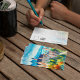 Este postal apresenta um retrato aquoso do Castelo Neuschwanstein, na Alemanha.